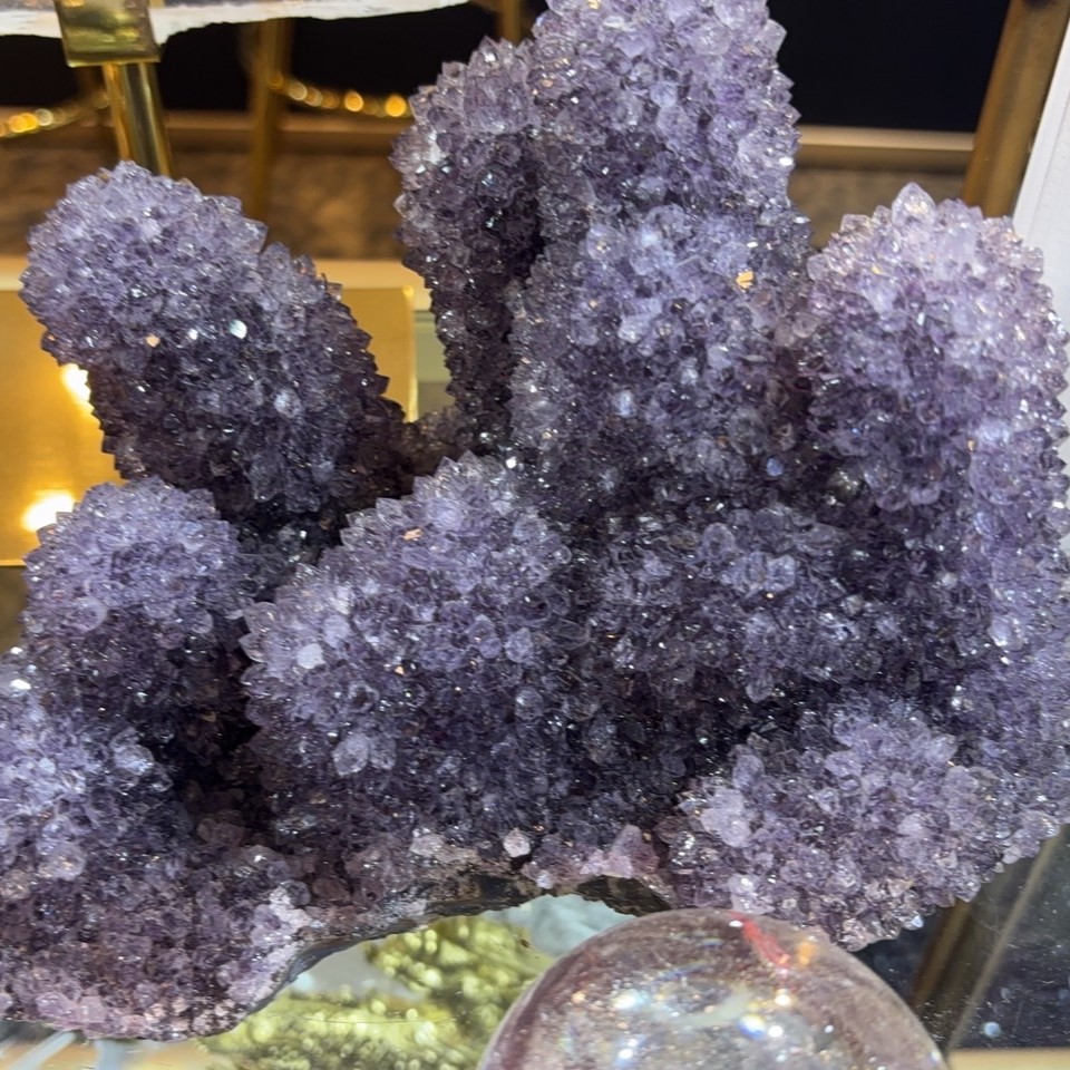 希少なタイチンルチルを選ぶ際は、針の太さだけでなく配列の美しさにも注目を。放射状に伸びる束は幸運を四方から集める象徴とされ、風水アイテムとしても重宝されています。デスク左奥に原石を置くと金運アップ、北側にポイントを飾れば守護力が高まるという説も。クリスタルクラスターと組み合わせると浄化効果が増し、空間のエネルギーが一段と澄みわたります。インテリアに取り入れ、生活シーンを輝きで満たしてみてください。